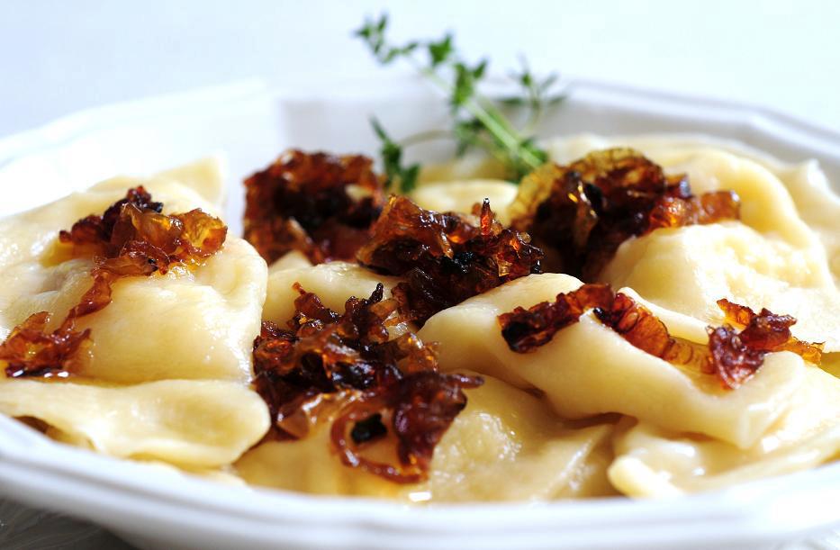 Varenike é um prato judaico, clássico do leste Europeu, uma espécie de “ravióli” com recheio de batata e cebola dourada.