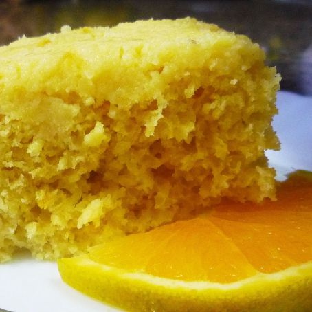 Quando estiver assado e, ainda, morno, jogue por cima do bolo, cortado em quadradinhos um glacê de laranja e passe-os em açúcar cristal.