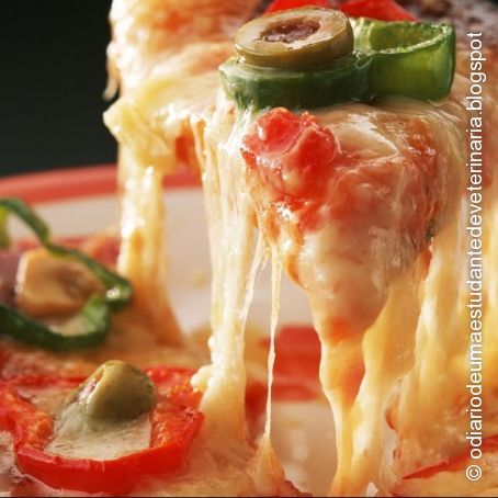 espalhe todos os ingredientes por cima da massa, menos a calabresa e o tomate.