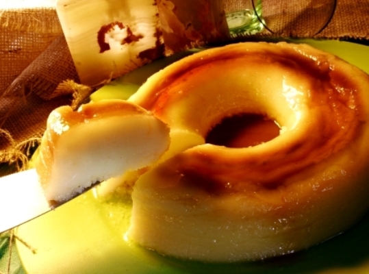Bata tudo no liquidificador, coloque em forma untada com açúcar queimado e leve ao banho-maria por aproximadamente 30 minutos