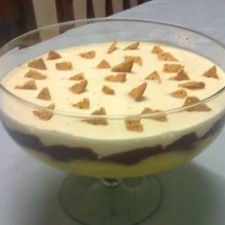Montagem: Coloque em um refratário grande na seguinte sequência:Gelatina, creme branco, metade das bolachas, creme de chocolate, restante das bolachas, claras em neve