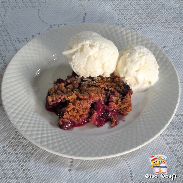 Uma deliciosa torta típica da Inglaterra, o crumble normalmente leva uma base de frutas com uma espécie de farofa, o crumble, por cima e depois é assada no forno. A farofa geralmente tem uma fruta seca para dar a crocância e o sabor, além de farinha e muita manteiga!