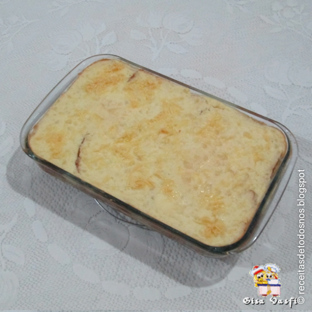 Unte um pirex com azeite ou manteiga, faça camadas alternadas de pão, queijo, presunto, tomates.