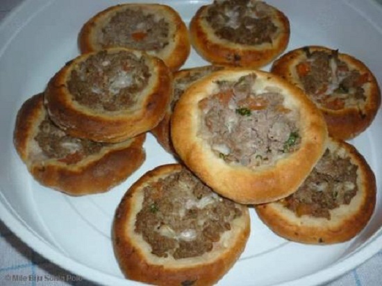 12. Coloque uma pequena porção de recheio sobre cada disquinho de esfiha