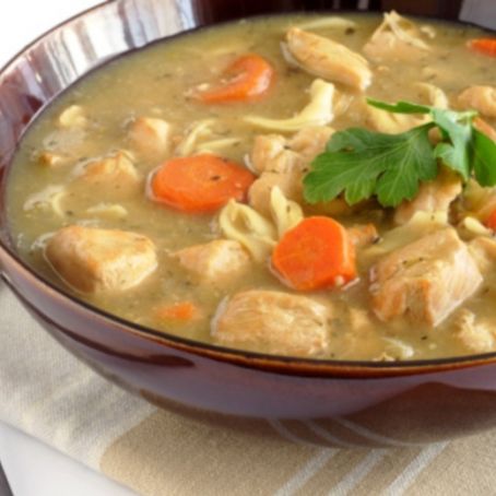 Na panela de pressão coloque o óleo, deixe esquentar e acrescente o frango, a cebola e o alho e o caldo de galinha