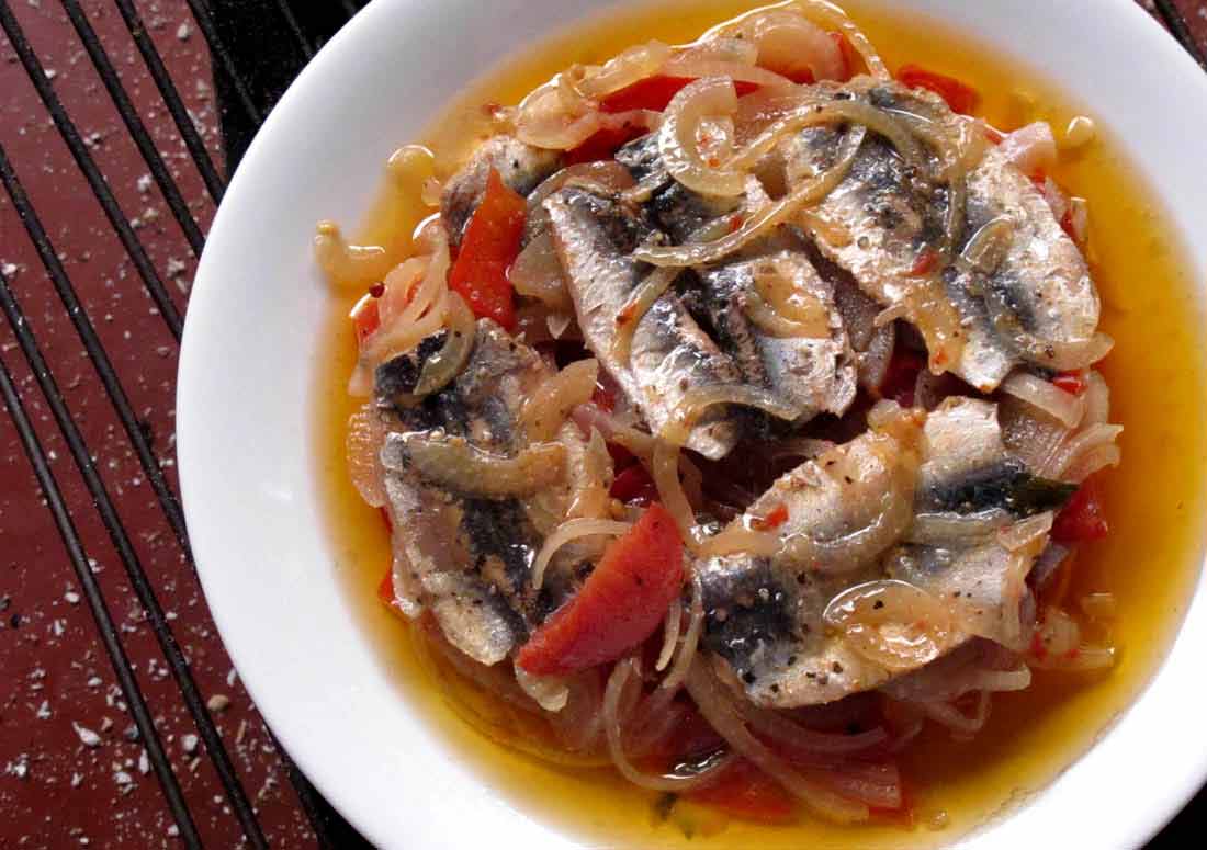 Vá intercalando as camadas de sardinha,as rodelas de cebola e o tomate,por último acrescente o restante do óleo.