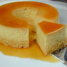 Flan de Coco com Calda de Morangos