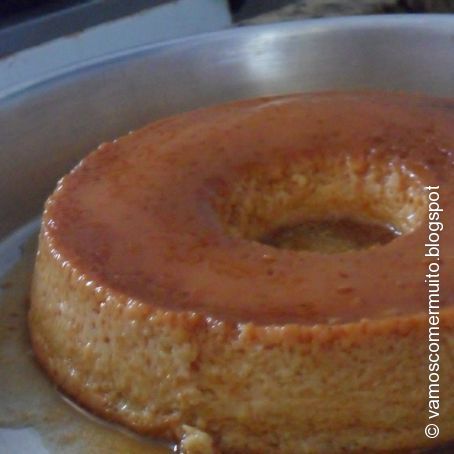 Calda - Coloque o açúcar numa forma redonda e leve ao fogo, quando o açúcar derreter e virar um caramelo adicione a água e mexa para dissolver.