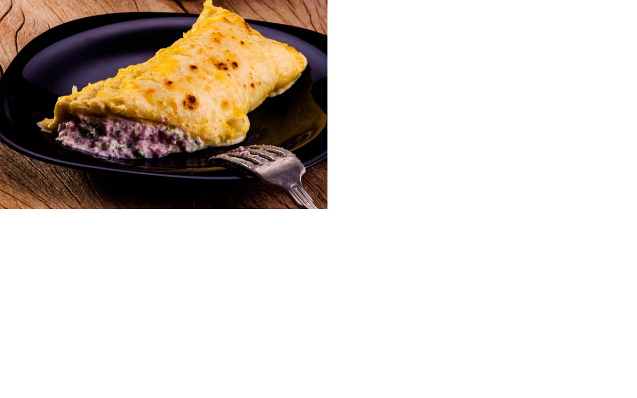 Panqueca Com Lombo Defumado e Molho Gratinado de Milho
