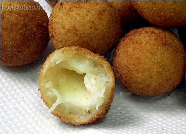 4.Pegue porções de massa, faça bolinhas e uma covinha no meio e recheie com um cubo de mussarela, feche e modele as bolinhas