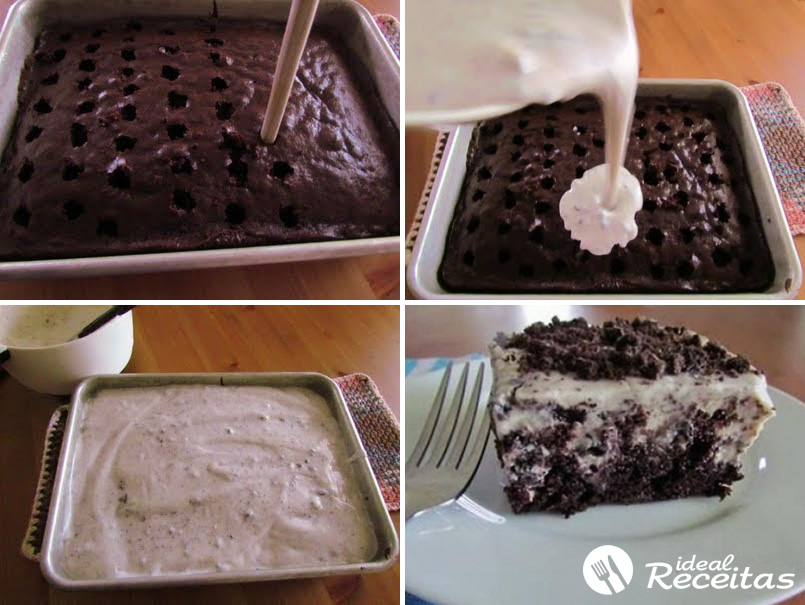 Bolo de Chocolate com Cobertura de Creme de Pudim e biscoito