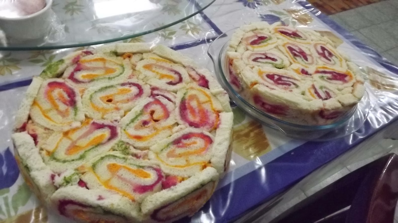 Preencha toda a lateral da fôrma com fatias do rocambole, uma pertinho da outra, passando um pouquinho de maionese nas fatias, para grudarem na lateral da fôrma com facilidade.