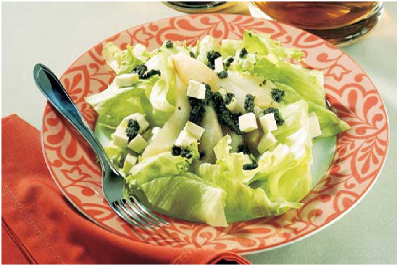 Salada de alface, pera e pesto de hortelã