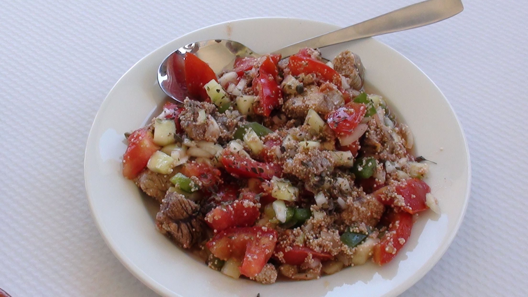- Azeite, vinagre, sal e ervas aromáticas (coentro ou salsa ou tomilho ou orégãos, etc.) q.b.