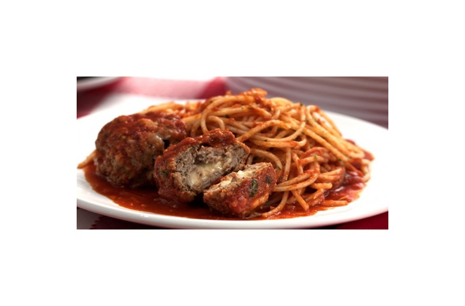Coloque o espaguete em uma travessa grande e, por cima, o molho com os polpetones.