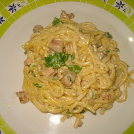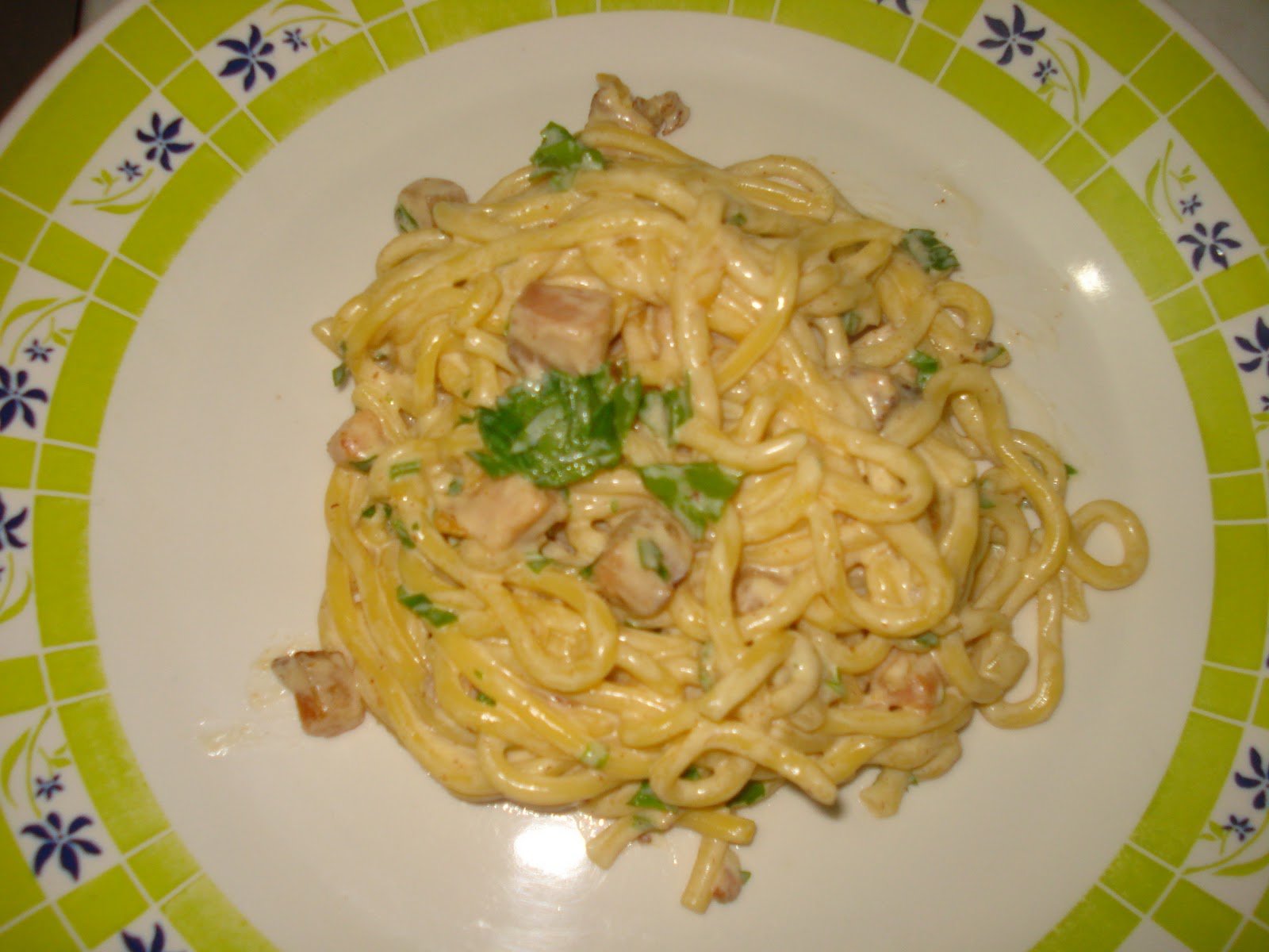 Coloque o macarrão para cozinhar normalmente com sal,em outra panela frite o bacon e na outra tigela dá só uma batidinha nas gemas,mistura com creme de leite,queijo ralado e bacon frito e joga no macarrão.