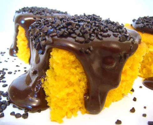 Asse em forno pré-aquecido por aproximadamente 40 minutos, em uma forma untada e polvilhada com fubá.