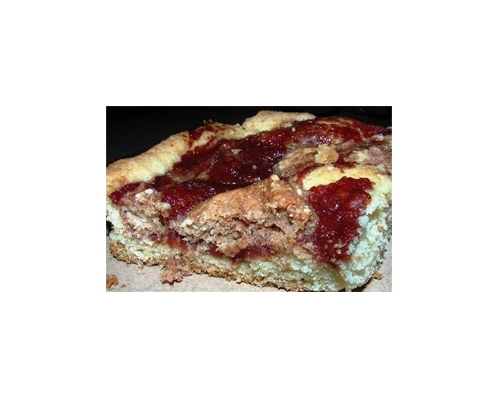Misture os ingredientes e distribua a massa em uma assadeira untada e enfarinhada, reservando uma pequena parte de massa para cobertura.