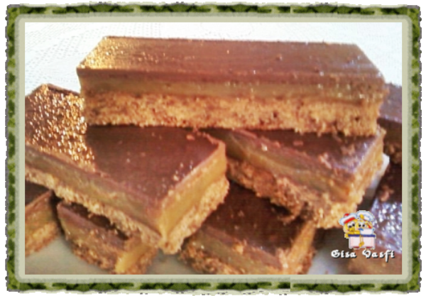 Espalhe a camada de butterscotch, deixe descansar por 1 h e espalhe a cobertura de chocolate.