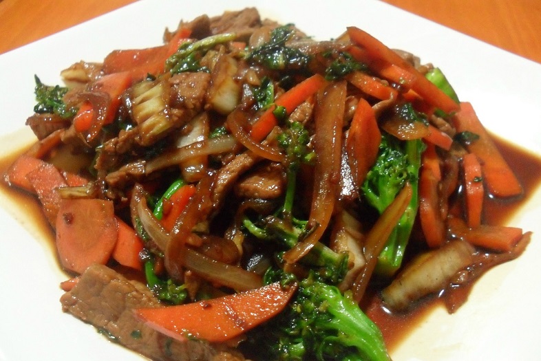 - 500 g de alcatra fatiada em bifes finos e cortada em tiras de 1 cm