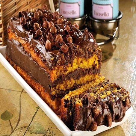 Corte o bolo em três camadas. E intercale com o recheio. A cobertura pode ser colocada sobre o bolo inteiro ou pode ser colocada em pedaços individuais na hora de servir