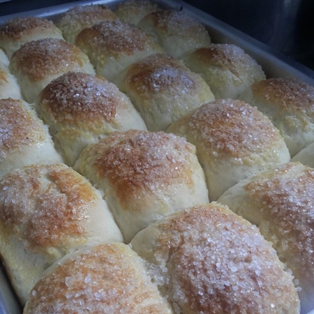 Em uma tigela dissolva o açúcar com o fermento, misture o leite, o ovo, a margarina, o sal.misture e vá juntando a farinha até começar a soltar das mãos, sove a massa, deixe descansar por 20 minutos, em seguida unte uma assadeira com um pouquinho de óleo,faça bolinhas e acomode na assadeira, pincele com a gema polvilhe o açúcar cristal, deixe descansar mais 20 minutos, e leve para assar até dourar levemente...