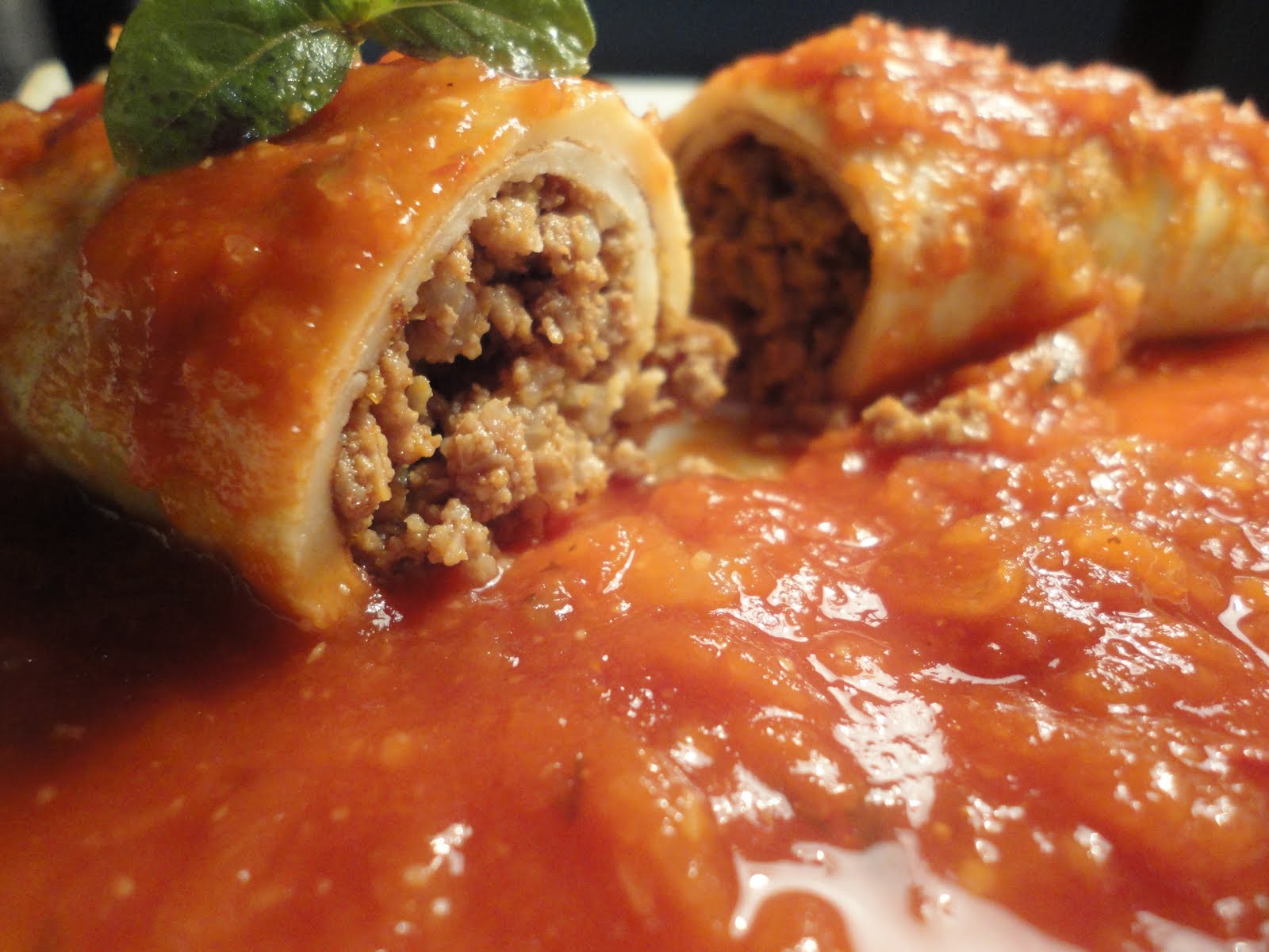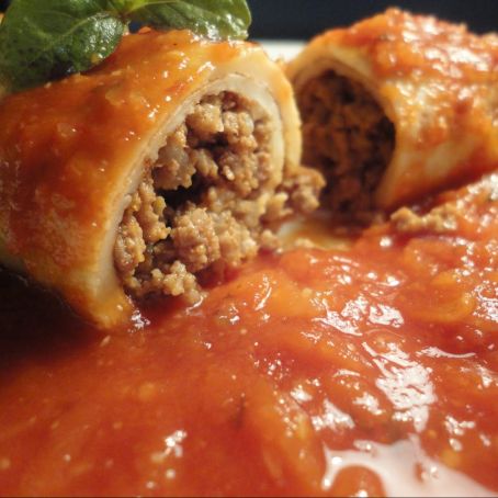 Retire a massa, coloque sobre um prato, coloque uma colher do recheio e dobre-a, acomodando-a em um refratário