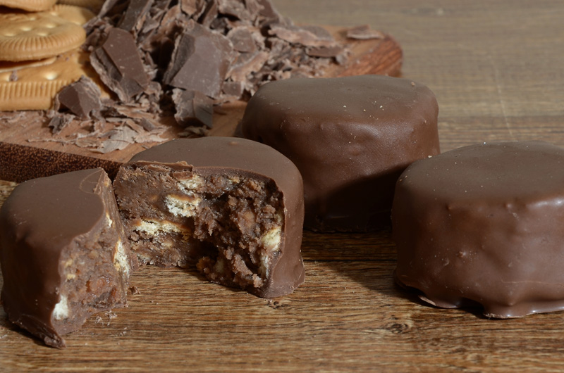 Assim que o brigadeiro começar a soltar do fundo da panela, misture o biscoito picado até formar uma massa