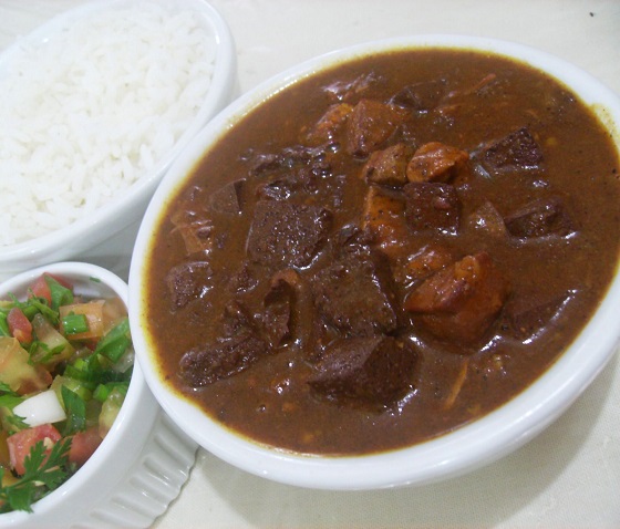 Obs: sarapatel é feito com as víceras do porco (miúdos do porco.)
