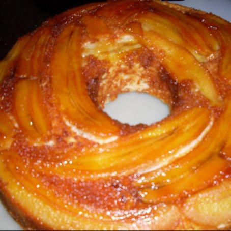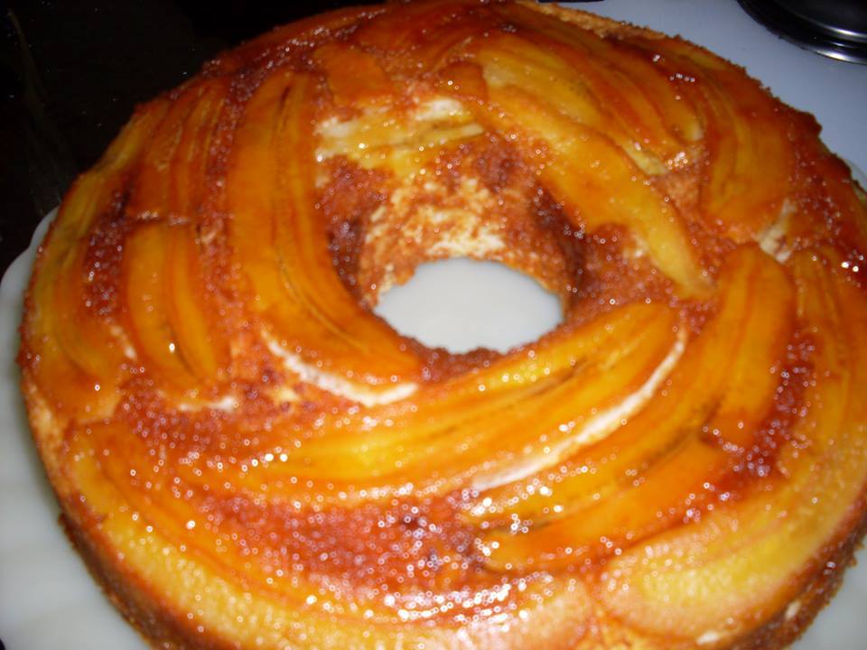 E uma forma untada e enfarinhada coloque o restante das bananas, coloque a massa e coloque no forno pre aquecido por 30 minutos ou asse ate dourar.
