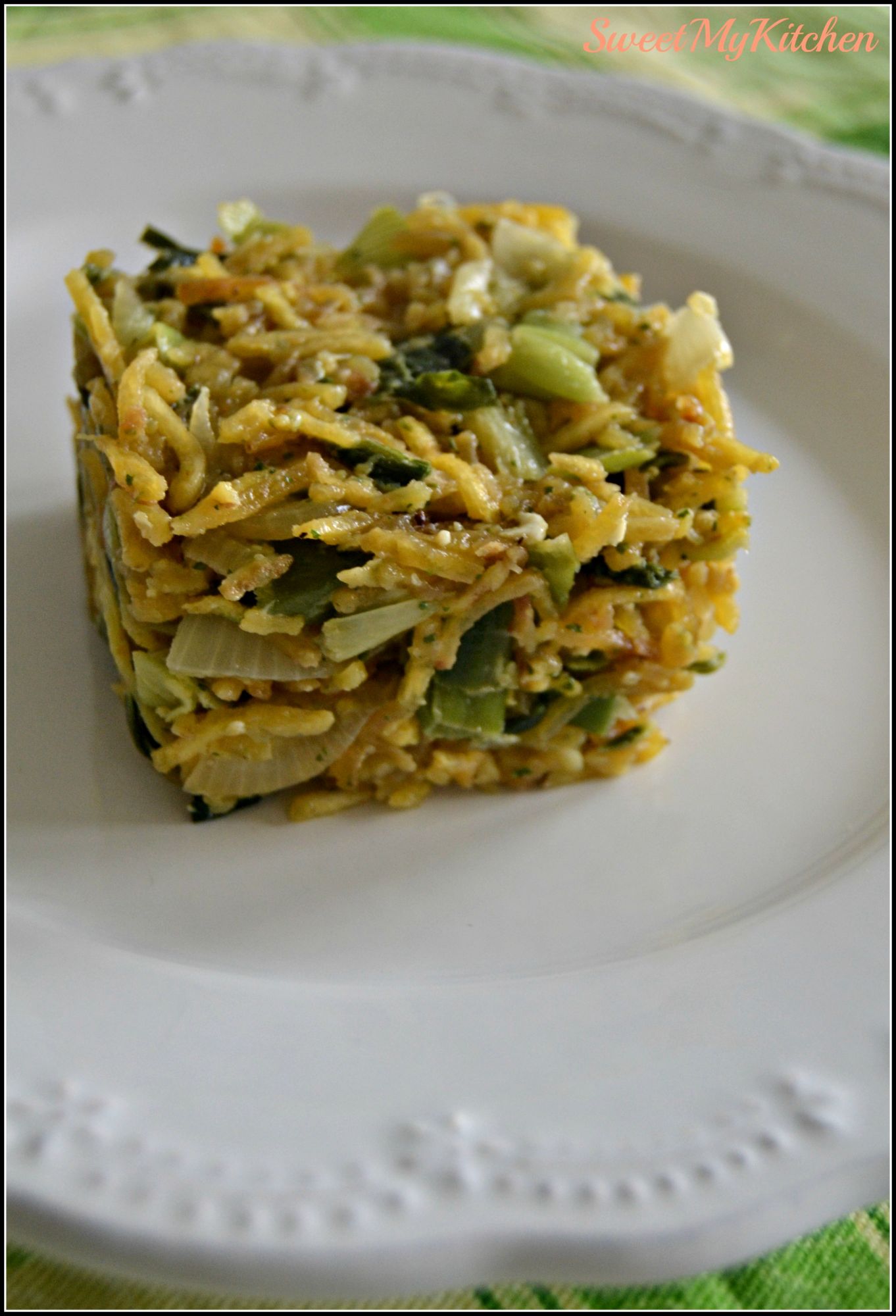 - Num tacho, coloque o azeite e junte o alho-francês, a cebola e os dentes de alho.