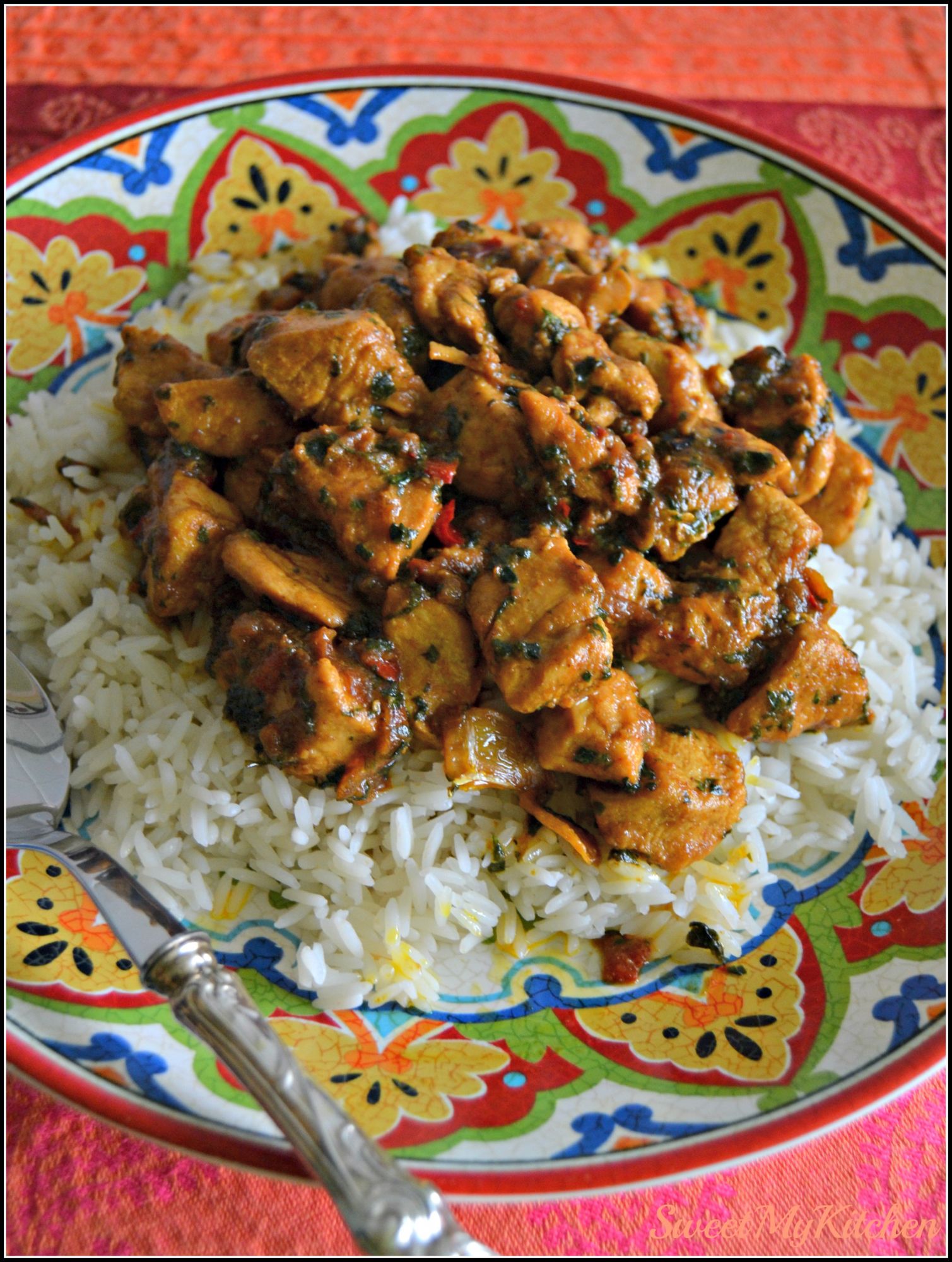 - Continue a cozinhar, mexendo sempre até que o frango fique dourado e as especiarias bem incorporadas.