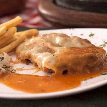 Unte uma forma com manteiga, coloque os bifes, faça um molho de tomate como de macarrão e coloque por partes os bifes, um pouco do molho o presunto o queijo em fatia e assim por diante