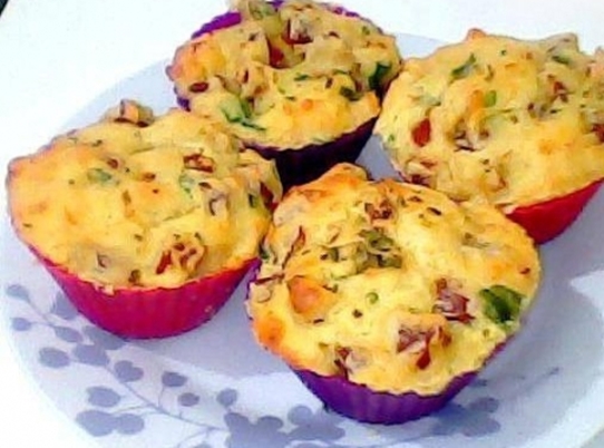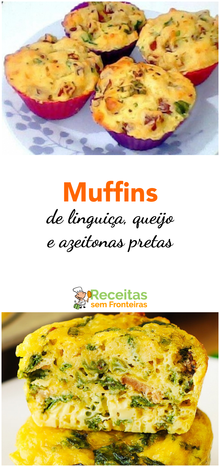 Muffins de Lingüiça, Queijo e Azeitonas Pretas