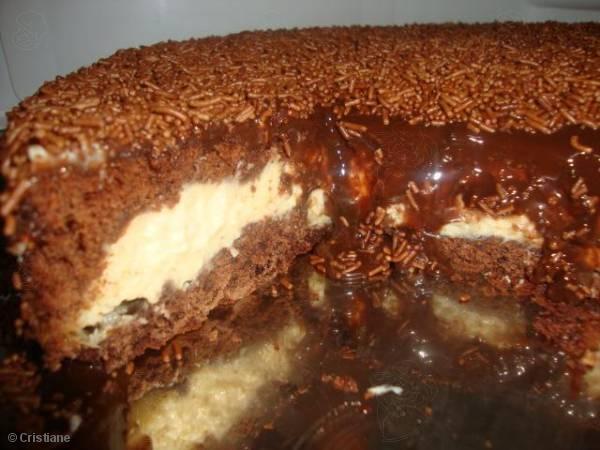 Aqueça em banho-maria ou no microondas a outra lata de creme de leite, acrescente o chocolate mexendo até derreter e use para cobrir o bolo quente