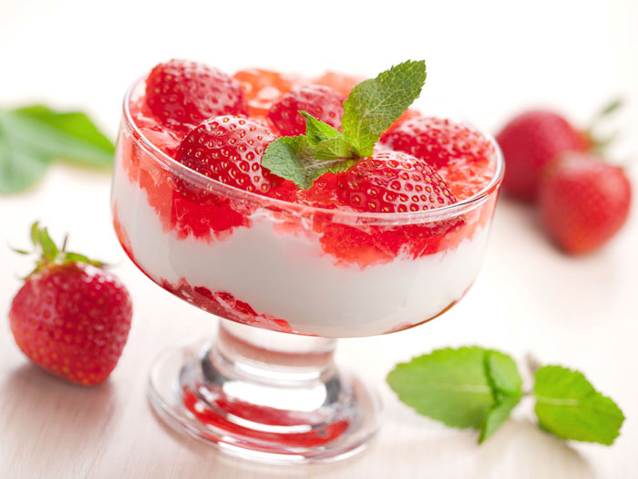 Lave bem os morangos e reserve. Em seguida, prepare a gelatina conforme as instruções da embalagem, mas somente com 250 ml de água. Coloque numa tigela os morangos, a gelatina preparada e o leite condensado. Bata tudo muito bem no liquidificador . Leve à geladeira por cerca de 6 horas. Decore com morangos e sirva.