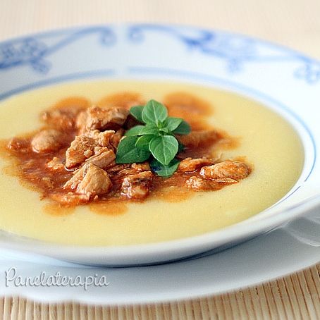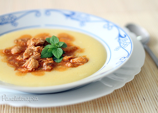 om a ponta de uma faca espete a polenta para o molho penetrar (opcional)