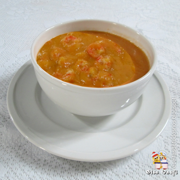 Lave muito bem as cascas e cabeças dos camarões e coloque para cozinhar com sal. Escorra, reservando a água do cozimento.