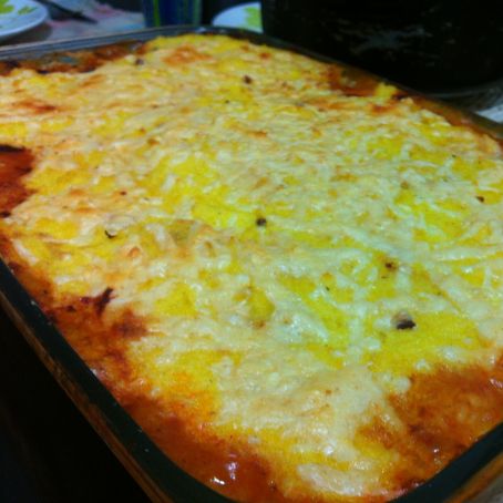 Em um refratário forre a metade do purê de batatas,uma camada de queijo e a carne moída, o restante do purê finalize com mais queijo mussarela e polvilhe queijo ralado por cima