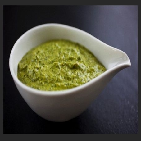 Soque em um pilão: o Pinoli, o alho e o manjericão.