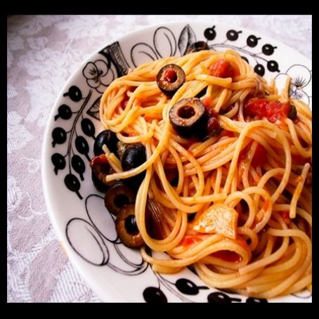 Agregue o molho de tomate e deixe cozinhando em fogo baixo. Verifique o sal e corrija, se necessário. Normalmente não precisa, pois o aliche, juntamente com as azeitonas e alcaparras já são salgadas o suficiente para salgar o molho.
