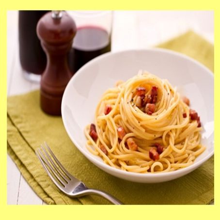 Despeje o macarrão na panela com o bacon, acrescentando a mistura de ovos/queijo e água de cozimento. Cozinhe por cerca de um minuto para que a massa absorva o molho.