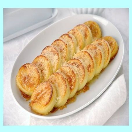 Com a borda de um copo ou um cortador, corte discos de semolina, sobrepondo parcialmente uns aos outros, e coloque em um prato refratário também untado com manteiga. Cubra com o restante do queijo parmesão e da manteiga derretida.