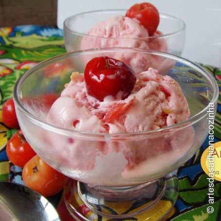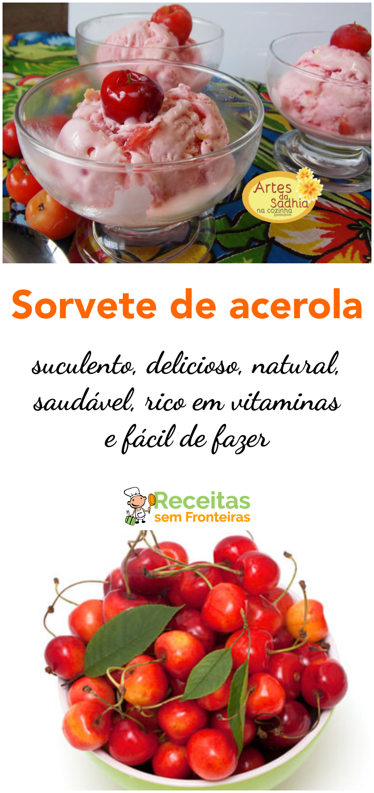 delicioso e refrescante sorvete de massa de acerolas ,estas frutinhas mágicas que contem mais vitamina C que uma laranja ,este sorvete te refresca e te fornece muitas vitaminas ,é a cara do verão