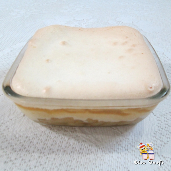 Despeje sobre o creme no pirex e leve ao forno até o merengue dourar.