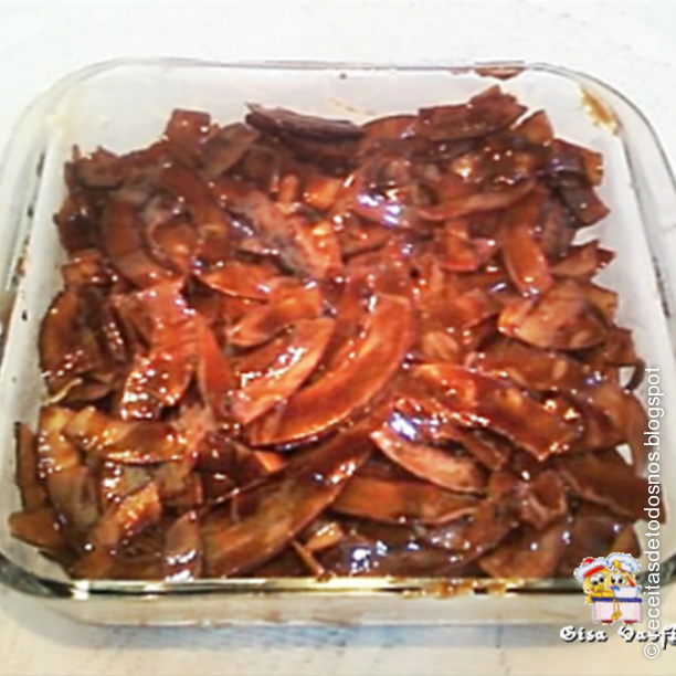 Passe para uma assadeira ou pirex untado com margarina e deixe esfriar.