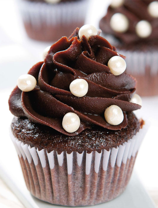 - Com ajuda de um saco de confeitar, cubra os bolinhos com o creme de chocolate e jogue por cima chocolate granulado ou outro confeito à sua escolha.