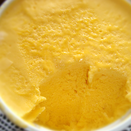 Quando estiver quase enduredcendo bata o sorvete em uma batedeira por 5 minutos e coloque novamente no congelador por 10 horas ou até endurecer.