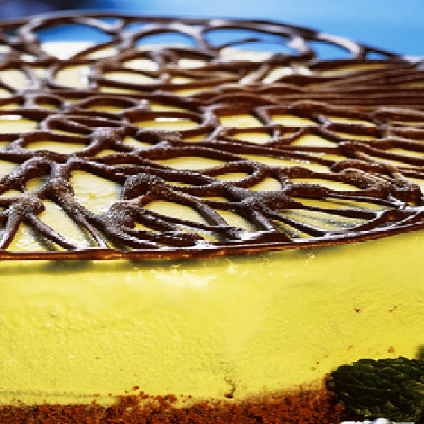 Leve ao freezer e deixe até o sorvete ficar bem duro. Tire do freezer e use a calda de chocolate para fazer desenhos sobre o sorvete. Ponha no freezer de novo até o desenho endurecer. Tire o bolo da forma junto com o papel e ponha sobre um prato. Retire o papel das laterais e deixe o do fundo. Corte o bolo em fatias e ofereça aos amigos!
