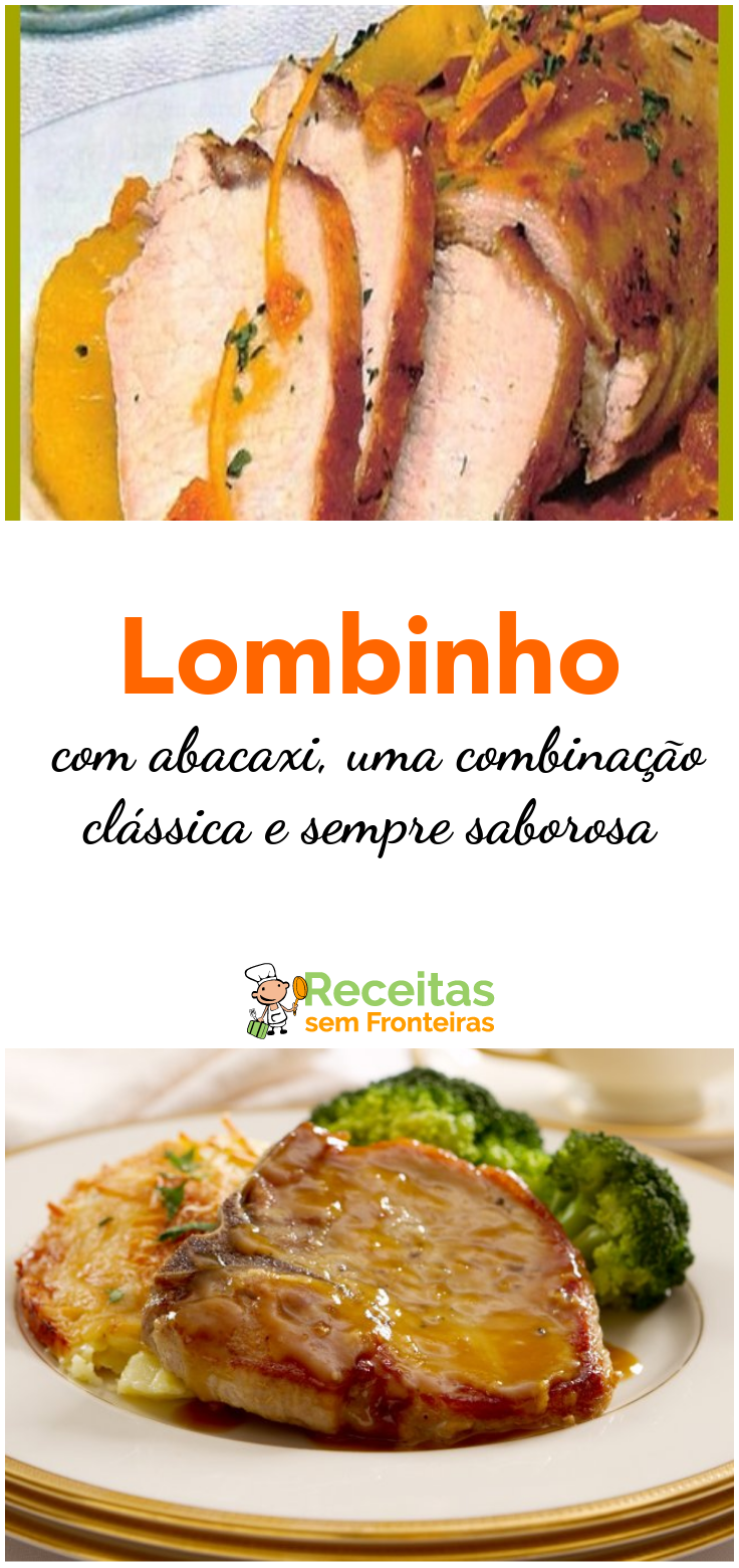 Misture ao tempero o suco da casca do abacaxi e regue o lombinho com azeite e leve para assar em forno médio. Verifique de vez em quando para regar com o tempero senão fica muito seco.